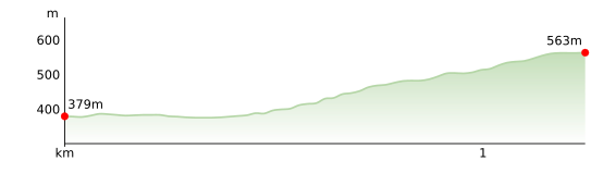 Pot se hitro strmo vzpne po dobro nadelani gozdni stezi, sprva ob robu gozda, zatem pa vas skoraj do konca vzpona planinske markacije vodijo po udobnih gozdnih stezah. Mestoma se teren položi.